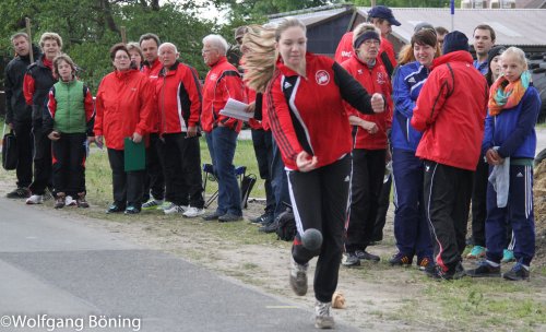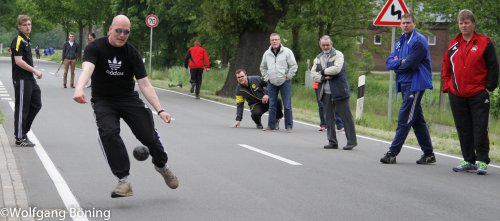 WBö. Bohlenbergerfeld/Grünenkamp, Teil zwei der Kreismeisterschaft im Straßenboßeln stand für die Aktiven aus dem Verband Friesische Wehde auf dem Programm, auf der Westersteder/Grünenkamper Straße. Diesmal die männlichen Klassen mit der Gummi und die weiblichen Klassen mit der Holz. Zusätzlich stand noch das Eisenwerfen für den weiblichen Part bei „Maschal“ an. Auf dem Buswendeplatz , Anmeldung, Siegerehrung, herrschte ein emsiges Treiben. Der KBV Bockhornerfeld unter der Leitung von Werner Glowatzki hatte alles bestens vorbereitet. Die Abwicklung